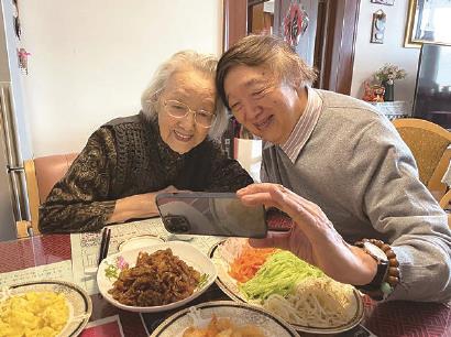 母親滿頭銀絲,皮膚白皙,笑容中透著慈愛優雅。80歲的兒子輕輕摸了摸媽媽的臉頰,“感覺就像小時候媽媽抱著自己時那樣……”他對母親說:“80年前的今天,您把我奉獻給大地了。您一輩子經歷了太多,一直在我身邊鼓舞著我。我要為大地多做好事,不辜負您,讓您的奉獻放出光彩?!瘪T先生還用手機和母親自拍合影,把這人間至福,分享給親朋好友。這個家,是他生命的原點。