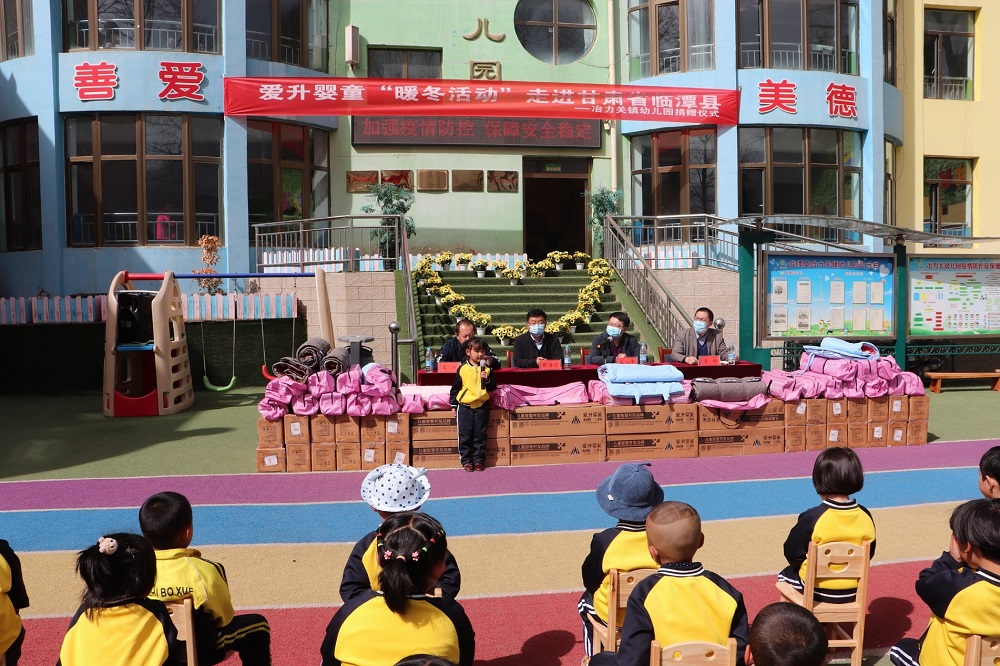 3月14日,中國作協派駐甘肅省臨潭縣的幫扶干部、縣委常委、副縣長崔沁峰和冶力關鎮池溝村“第一書記”、駐村幫扶工作隊隊長王棟在冶力關鎮幼兒園開展愛升童嬰“暖冬活動”走進臨潭愛心捐贈活動。此次捐贈通過積極爭取新浪育兒、微博母嬰、浙江愛升嬰童等社會力量參與幫扶工作,為臨潭縣日托幼兒捐贈價值6萬元的卡通睡袋200套,其中,為冶力關鎮幼兒園捐贈睡袋70套。