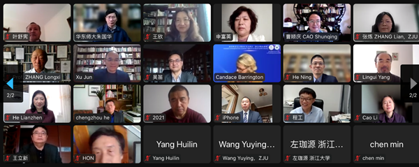 3月18日至20日,由浙江大學外語學院主辦,中世紀與文藝復興研究中心承辦,《浙江大學學報(人文社會科學版)》協辦的“跨越·比較·匯通:外國文學與比較文學高端論壇”在線上順利召開。哥倫比亞大學教授Jean E. Howard、香港城市大學教授張隆溪、中國人民大學教授楊慧林、上海交通大學教授王寧、四川大學教授曹順慶、中國社會科學院研究員陳眾議、北京外國語大學教授金莉、上海外國語大學教授查明建、中康涅狄格州立大學教授Candace Barrington等近四十位國內外專家學者應邀參與了論壇。浙江大學副校長何蓮珍為論壇開幕式致辭。浙江大學文科資深教授許鈞擔任論壇的學術委員會主席。會議于18日下午、19日上午和下午共舉行了三場論壇,二十四位與會學者做了主題發言。會議同期在B站進行了直播,四千多人次在線聆聽,惠及校園內外。論壇線上合影