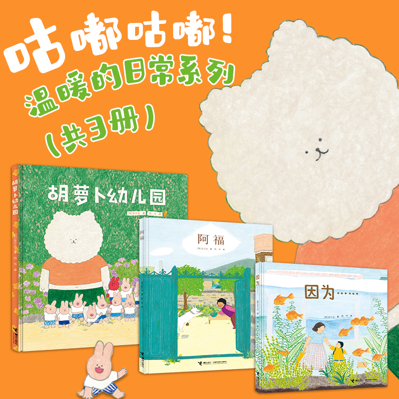 在《胡蘿卜幼兒園》中,從我的老師特別兇,到我的老師特別帥,大熊老師到底對剛剛入園的小兔子施了什么魔法呢?在《因為……》中,如果你家愛面子的小朋友在幼兒園尿褲子了,你會怎樣和他一起面對這件糗事呢?還有在《阿?!分?,這只叫阿福的狗狗是怎樣的撫慰那些孤獨的心呢?