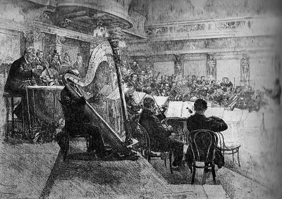 表現維也納愛樂樂團在金色大廳演出的著名蝕刻畫,費迪南德·施穆策作于1923年 資料圖片