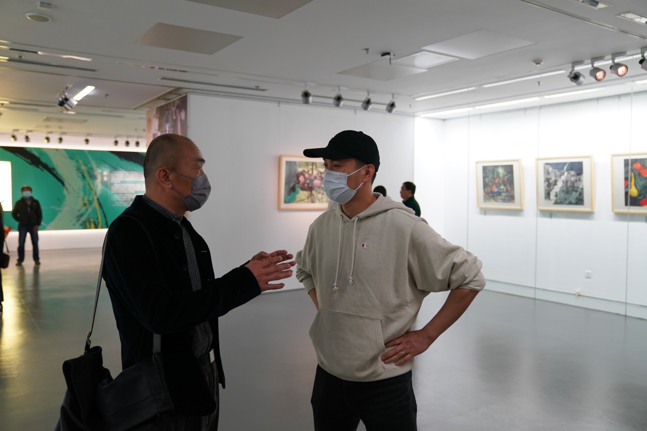老舍、胡絜青夫婦愛畫、賞畫、藏畫、習畫,與美術大師交往密切,舒家家學中素有美術淵源,子女也在耳濡目染中獲得了許多生動、深刻的美術教育。舒乙先生六十歲后重拾畫筆,創作出一幅又一幅色濃情真、個性鮮明、蘊含文學氣質的繪畫作品,他善于發現生活之美,畫作構思新穎、富有情懷、別有意趣。舒乙先生曾說自己畫畫就是想把文字不好表達的內容用畫來詮釋,“自己左手是字,右手是畫”。座談會結束后,部分與會嘉賓參觀了“舒乙的畫”特展,在精選出的46幅舒乙繪畫作品前駐足停留,仿佛回到與畫作者共同經歷的舊日時光。