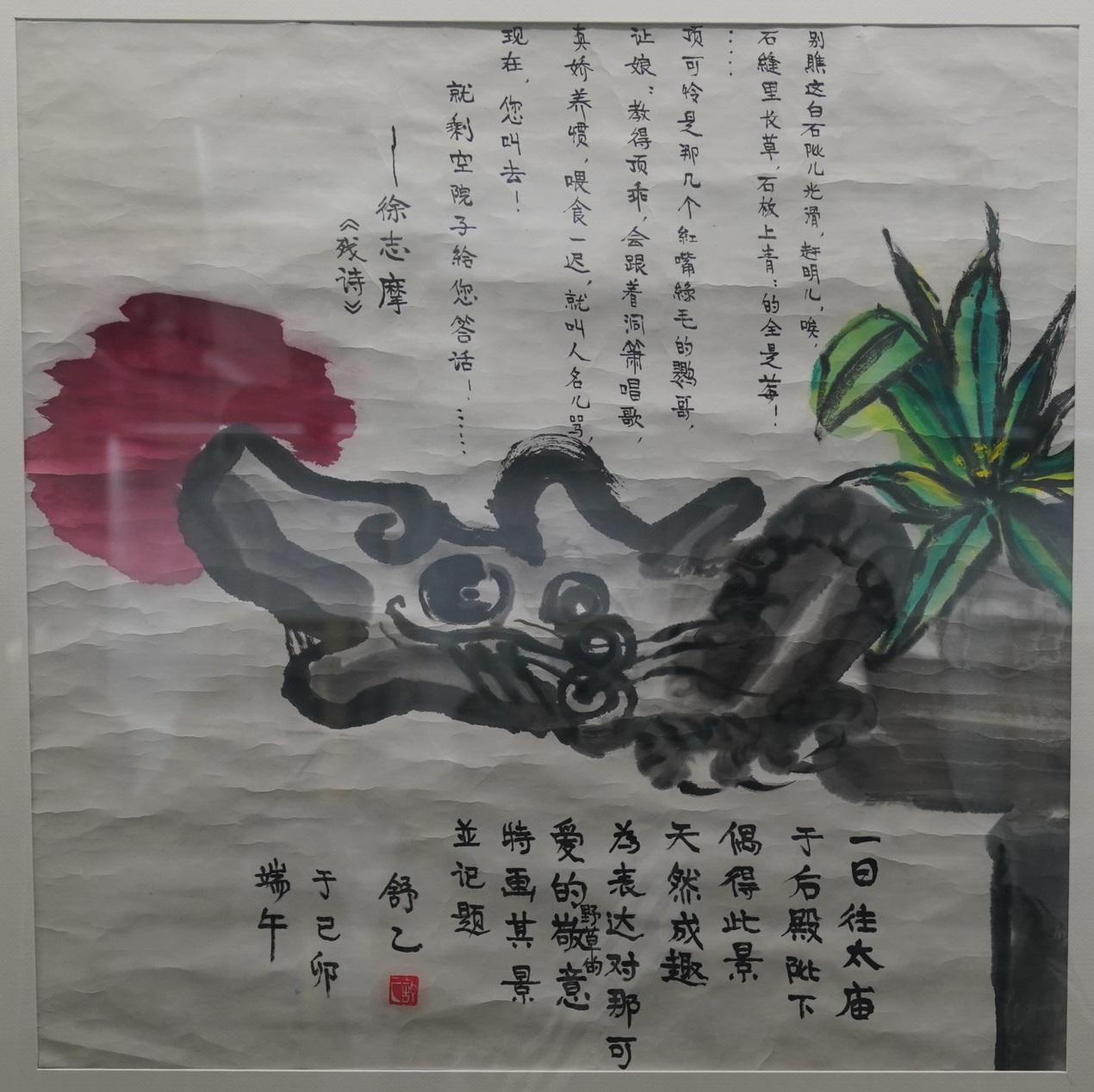 1999年春,舒乙繪畫并寫下,“一日往太廟于后店階下偶得此景,天然成趣,為表達對那可愛的野草的敬意,特畫其景并記題”。82cm×82cm。