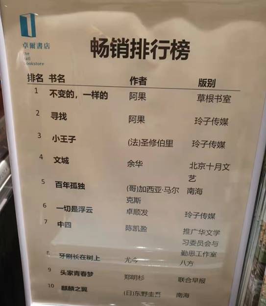 《文城》在新加坡華文書店登上暢銷排行榜前列