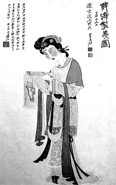 薛濤箋在唐代深受文人喜愛,元稹、白居易、牛僧儒、杜牧、劉禹錫等二十余人,都與薛濤有過詩詞唱和,而且大多使用的是薛濤的花箋。韋莊在《乞彩箋歌》中提到“也知價重連城璧,一紙萬金猶不惜。薛濤昨夜夢中來,殷勤勸向君邊覓”,以此贊美薛濤箋。至唐末,薛濤箋已極為名貴。后世,薛濤箋的原作不復得見,歷代紛紛仿制。