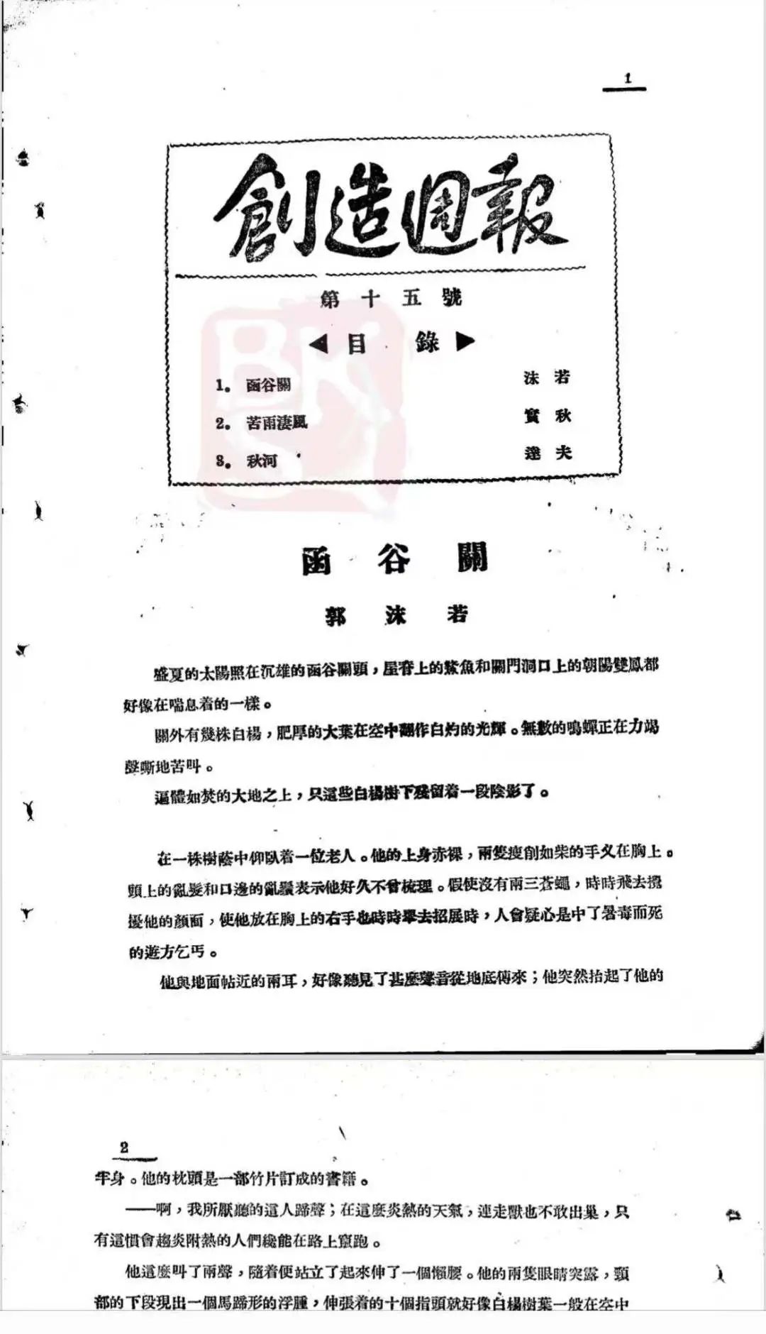郭沫若在《創造周刊》1923年第15號發表《函谷關》