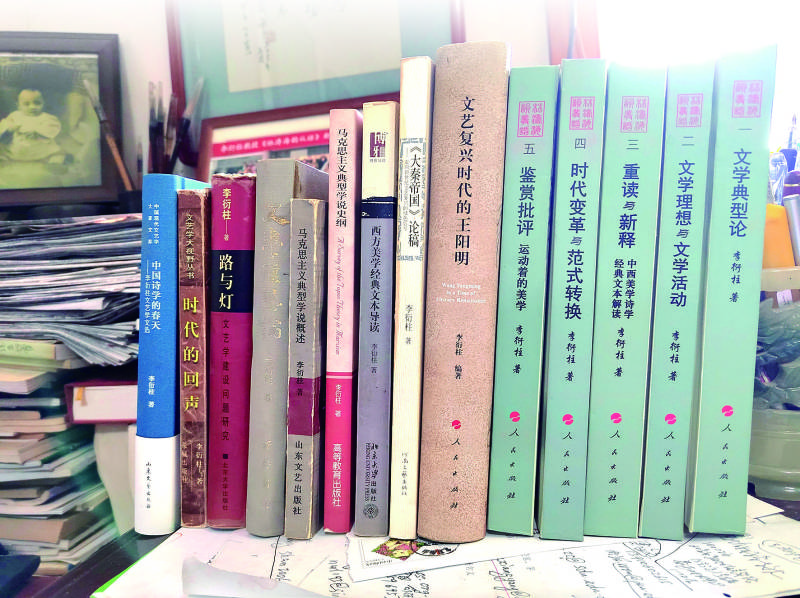 走進李衍柱先生的書房,狹小的空間被書香和墨香環繞:一張暗紅色的木質書桌、一把工作椅,一排書柜貼墻而立,與書桌對望。打開書柜,各式各樣具有年代感的文藝學研究領域的書籍應有盡有。這些書籍或舊或新,有些是“驚鴻一瞥”的偶然購得,有些是百般探尋后的“珍藏”,卻如一串串珍珠,串聯起理想與現實,記錄著他走過的人生歲月。