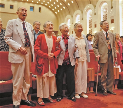 人藝建院60周年紀念會上的老藝術家們,左起朱旭、朱琳、胡宗溫、蘇民夫婦(攝于2012年6月12日)