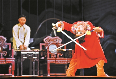 6月11日晚,在北京人藝曹禺劇場,演員們表演詩朗誦《向戲劇致敬》