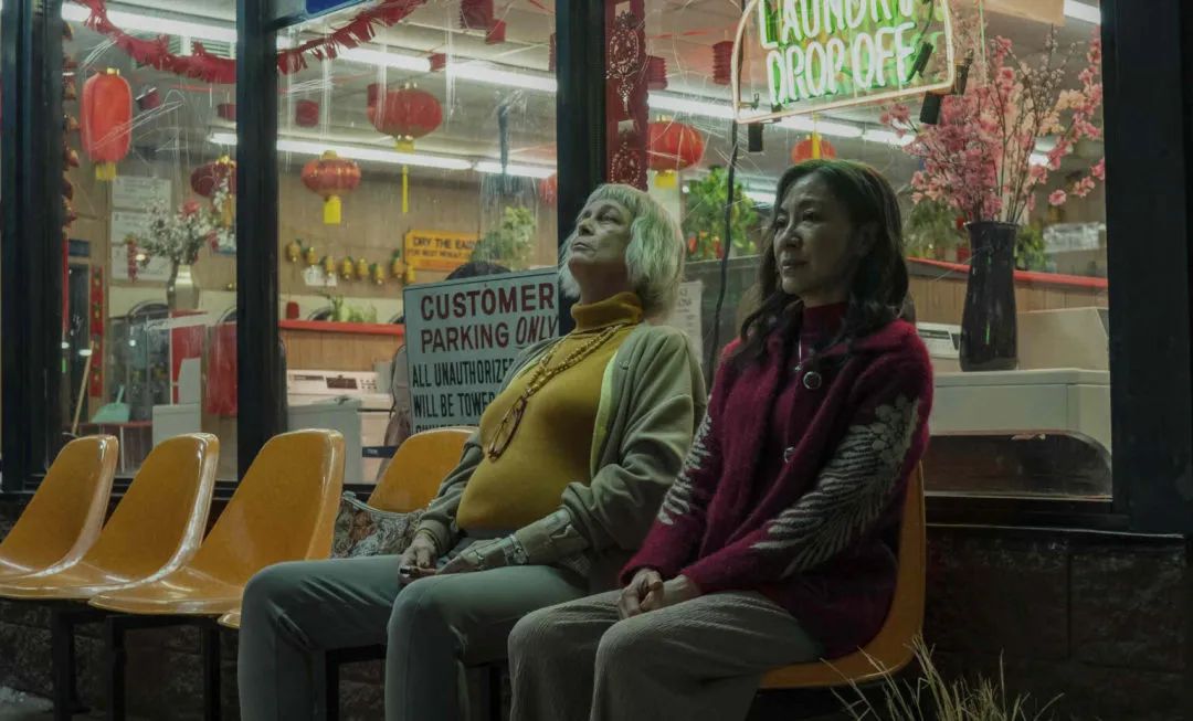 拋開《瞬息全宇宙》并不太新鮮的科幻設定——平行宇宙,電影內核仍是熒幕上經久不衰但??闯P碌娜宋哪割}——中國移民家庭下的親子關系。在這部電影之前,已經有一些作品探討過這一話題,如同樣上映于2022年的奇幻動畫電影《青春變形記》(Turning Red),再如2015年開播的美劇《初來乍到》(Fresh off the Boat),以及1993年的電影《喜福會》(The Joy Luck Club)。從這些影視劇作品中不難發現,控制欲過強的母親、唯唯諾諾甚至隱形的父親,以及因為在美國長大, 思想更加美式的子女,這些形象似乎已經定格在了中國移民家庭中?!端蚕⑷钪妗返娜宋镆搽y逃這幾個既定范式,但不同的是,電影在強化人物既定范式的同時,也為中國移民家庭親子關系這一母題提供了新鮮視角——子女的存在主義危機。