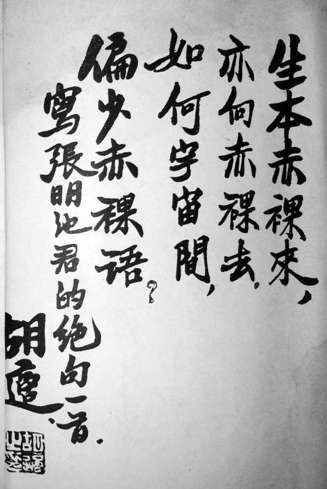 這封信我很想留著做一種紀念,只因你要我把原稿還你,所以先寄還你,希望你抄了一份之后,仍把原稿寄給我。你們的詩稿,我略略看了,其中有些很可誦;如“小窗雙影話心肝”便是好句。但作舊詩是很不容易的事,所以我不勸少年人向這路上走。