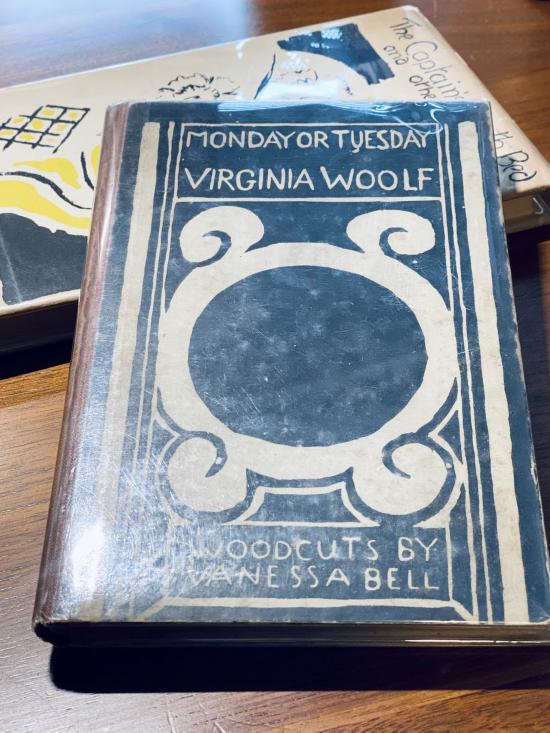 因為喜歡她的文,循序漸進地關注過她的古舊書籍。每到一處古董書店,也會尋著她的筆跡去追蹤細枝末節。有一年在舊金山的古董書集市里偶遇她1921年《Monday To Tuesday》初版(first edition),短小冊子,配著姐姐凡妮莎(Vanessa Bell 1879-1961)創作的版畫書衣,風格大膽野趣,價格不菲稍稍猶豫。無奈返國之后卻念念不忘,電子郵件店主,書在遂歸我。店主回復里說,我是伍爾芙書籍中為數不多的亞裔藏家,并問我的專業是否英國文學,居然有這么一個奢侈的愛好。其實慚愧,我并未讀完伍爾芙全部作品,對于原文讀解領悟皆為一知半解。只是受到一些偶然的指引,比如在紐約大學附近舊書店里得了帕蒂·斯密斯(Patti Smith 1946-)一本攝影集,其中有一張帕蒂拍攝得伍爾芙的臥室,印象非常深刻的畫面。臥室里只有一張白色的床,以及窗欞投射到墻上的大小光暈,床套潔白翻著淡淡的灰,繡著一枚樸素的十字架。