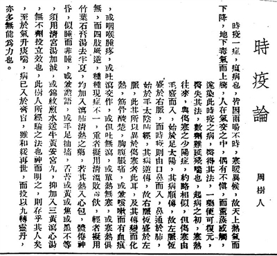 周樹人《時疫論》,原載《國醫旬刊》