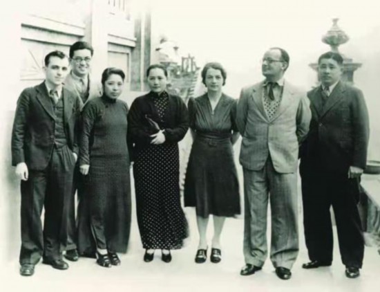 宋慶齡為抗日募款宣傳而組織“保衛中國同盟”。從左到右分別是愛潑斯坦、香港《華商報》創辦人鄧文釗、廖仲愷之女廖夢醒、宋慶齡、司徒永覺的夫人希爾達·塞爾溫-克拉克(Hilda Selwyn-Clarke)、我們的主人公佛朗士和廖仲愷之子廖承志,攝于1938年。香港大學檔案館藏。