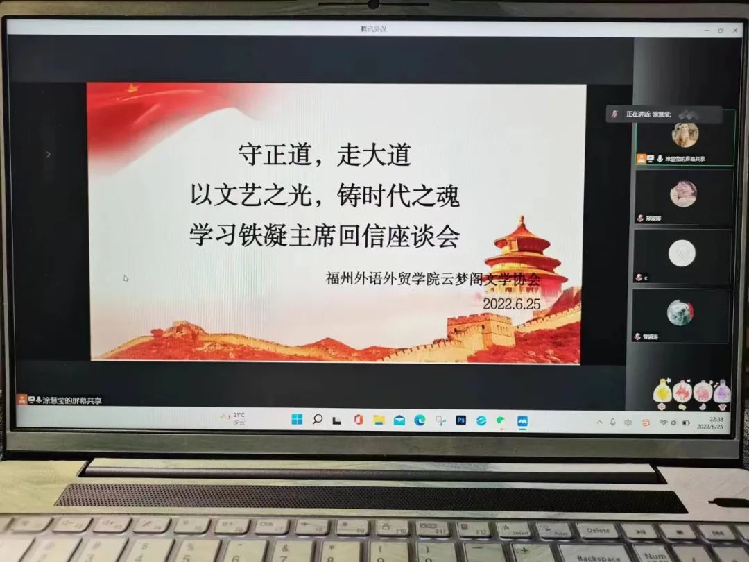 福州外語外貿學院云夢閣文學協會線上學習鐵凝主席回信并進行座談