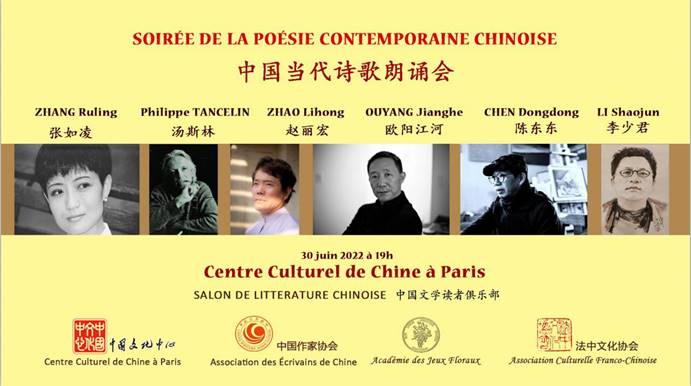 6月30日晚,位于法國巴黎市中心的中國文化中心小劇場內,高朋滿座,熱鬧非凡,由中國作家協會支持,法國“中國文學讀者俱樂部”與中國文化中心聯合主辦,法國圖盧茲詩歌學院協辦的“中國當代詩歌朗誦會”成功舉行。中國駐法國大使盧沙野、著名詩人阿多尼斯、圖盧茲詩歌學院首席秘書長拉波爾達里埃爾、法蘭西學院藝術院通訊院士高麗昂、巴黎七區常務副區長高德、法國“中國文學讀者俱樂部”負責人高醇芳、活動策劃人、旅法詩人張如凌等近200名中法文學藝術界人士和嘉賓濟濟一堂,共同聆聽、品味中國當代詩歌。讓此次活動成為近年來在法國舉辦的規模最大、規格最高的一次中國文學盛會。
