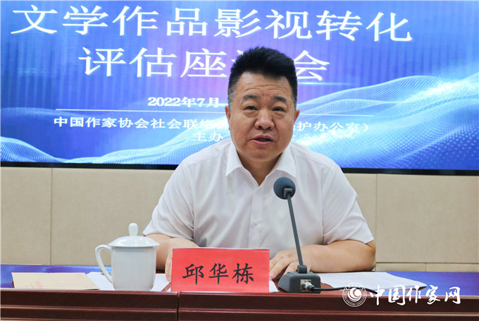 邱華棟在講話中表示,中國作協黨組書記處高度重視文學作品影視轉化工作,多次提出文學要回應時代呼喚,積極融入現代傳播格局,特別是作協十大以來,為貫徹落實習近平總書記在中國文聯十一大、中國作協十大開幕式上的重要講話要求,中國作協提出要強化互聯網思維,探索新模式、搭建新平臺、引入新資源,為文學工作開發“數字化”空間,進一步拓寬文學道路,光大文學價值。在黨組書記處的領導和關懷下,中國作協權保辦不斷強化自身職能,謀求“破圈”發展,與上海文化產權交易所達成戰略合作,挖掘文學版權的潛能空間,促使版權的創造、運用、保護效果顯著提升。希望通過這次評估會,發掘出最能體現“國之大者”、展現中國精神,最符合當下市場行情和觀眾審美的精品,打造一批中國作協促進作品成功影視轉化的先行項目,為促進文化市場健康繁榮發展貢獻文學力量。