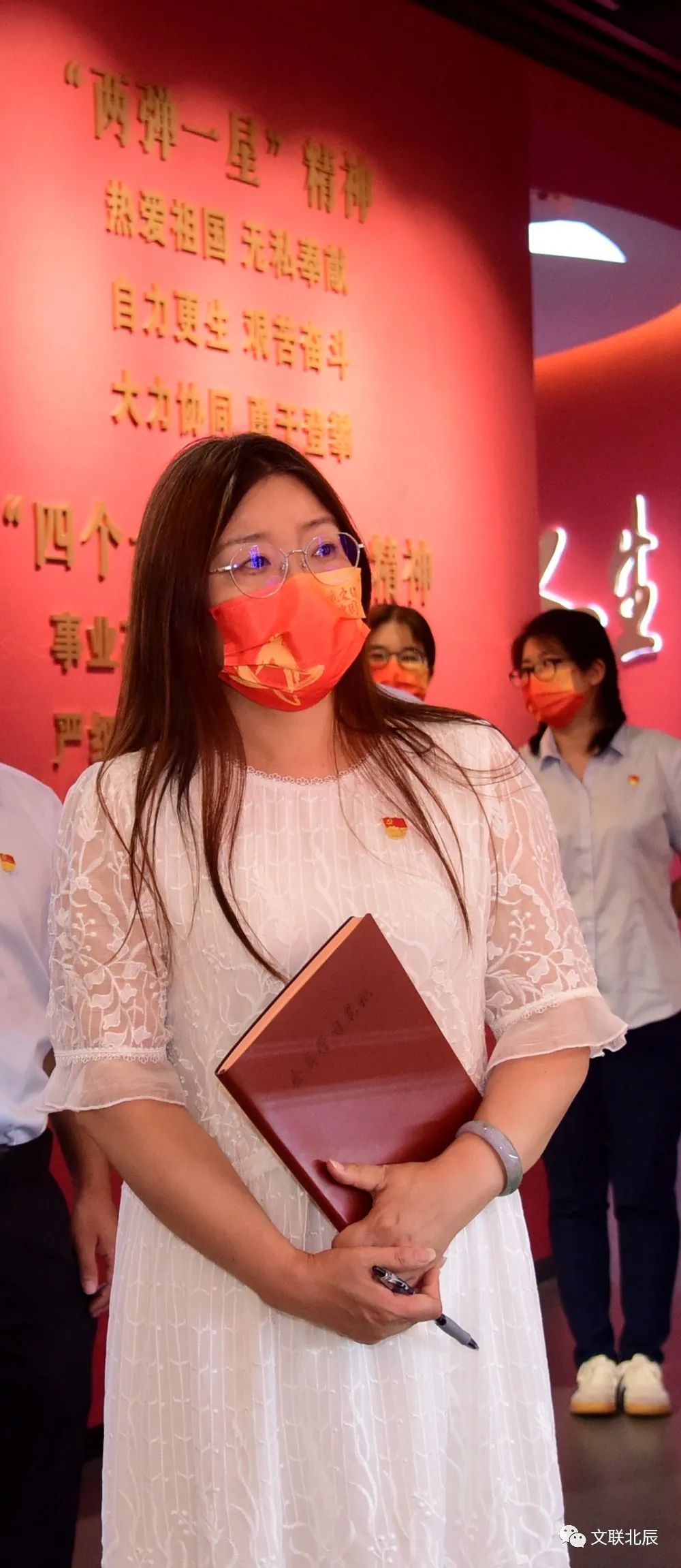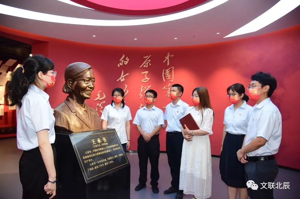 7月22日,在王承書紀念館采訪的作家季曉涓和青年科學家們,懷著崇敬的心情聆聽講解員講述王承書院士三次“我愿意”,隱姓埋名30年回報黨和祖國的召喚。