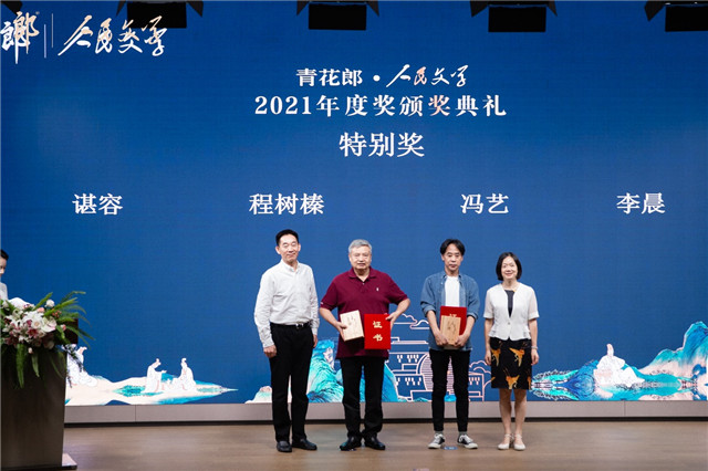 此外,評委會經過慎重討論,鑒于作家諶容、程樹榛、馮藝和畫家李晨于本年度在《人民文學》發表的作品,及多年對雜志和文壇的貢獻,一致同意授予他們青花郎?人民文學獎特別獎。