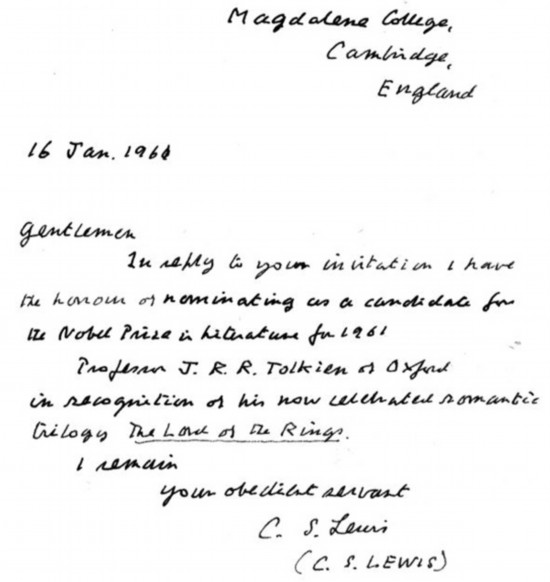 劉易斯提名托爾金《魔戒》的信件,來自《C.S.路易斯:天賦奇才,勉為先知》([英]麥格拉思著,蘇欲曉、傅燕暉譯,上海三聯書店2018年5月版)