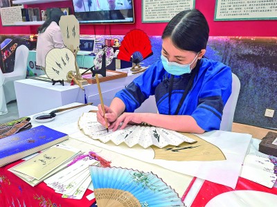 在這場展覽上,非遺傳承人的藝術靈感每天都在進行碰撞,擦出新的火花??缃?、創新與“云端”,讓非遺文化在交融中發展。