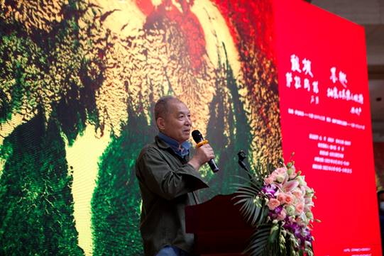 開幕式上,漫畫家蔡志忠發來視頻賀辭。作家梁曉聲,國家發改委書畫協會會長王思強,中國世界民族文化交流促進會副會長兼秘書長邱麗,中央美術學院教授、喀什大學美術與設計學院院長薛云祥,中國畫大師黃胄之女梁纓,廣西大家育才教育投資有限公司董事長傅連城,畫家賀鵬飛先后發表致辭。王思強還代表中國美協駐會副主席、黨組書記馬鋒輝對本次畫展表示祝賀。文化和旅游部原黨組成員、中國非物質文化遺產保護協會會長王曉峰宣布畫展開幕。
