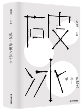 《破冰:新散文三十年》是由祝勇主編的一部獻給“新散文”三十年的紀念集,收錄鐘鳴、于堅、馮秋子、寧肯、張銳鋒、蔣藍、祝勇、周曉楓八位“新散文”代表作家的代表篇目,以此描摹“新散文”創作三十余年的吉光片羽?!靶律⑽摹鄙钌罡仓腥A大地,行走于華夏自然山川,跋涉于社會現實生活,在“新散文”里,我們看得到孔子、莊子的影子,也看得到卡夫卡、博爾赫斯、曼德爾斯塔姆的影響,更看得到“新散文”作家們復雜、迷離的主體世界?!靶律⑽摹蓖嗜チ水敵醯男落J青澀,成長為一個強大的精神主體,生成了一個具有超大能量的內宇宙,代表著一種新的觀念、方向、高度,是中國散文通向未來的道路,也是中國文學在經歷先鋒文學的青春沖動之后的一次再出發。