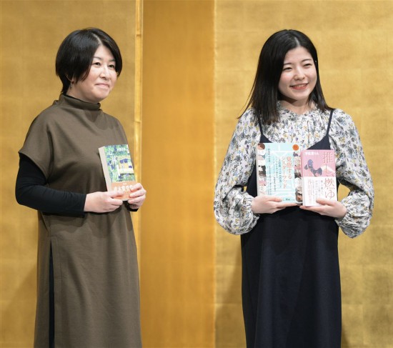 宇佐見鈴(右)獲得2021年第164屆芥川獎,左為164屆直木獎得主西條奈加