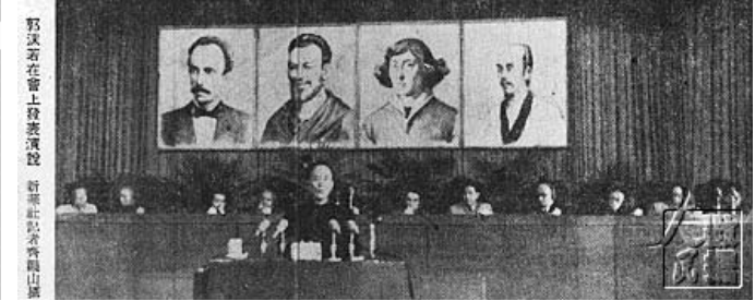1953年9月27日,北京中南海懷仁堂,郭沫若在世界四位文化名人紀念大會上發表演說