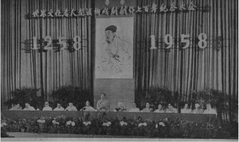 1958年6月28日,首都紀念世界文化名人關漢卿戲劇創作七百年紀念大會主席臺