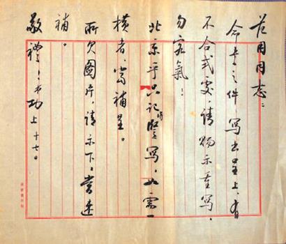 所設計各端,悉遵碩劃……至于拙著手稿,原本已歸港上友人,印本中者俱用照片。其印片前曾以一份奉上,今既不存,北師大只存印片一份……又想到如只用數首,是否可由功另寫做起草之樣,字稍行草,略加修改,做假草稿,雖未免欺人,亦可避免雷同,而稍見別致,不知高明以為如何?