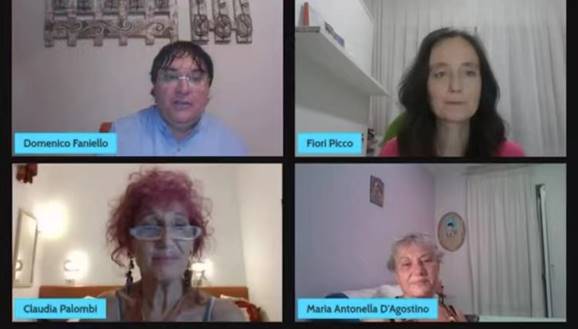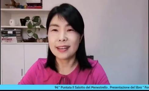 在活動上,意大利作家、翻譯家、花達西亞出版社社長費沃里·皮克女士 (Fiori Picco,中文名:雪蓮) ,意大利詩人、弗蘭徹斯克加百利國家文學獎主席多梅尼科·法涅洛先生 (Domenico Faniello),意大利著名作家、導演克勞迪婭·帕隆比女士 (Claudia Palombi)和意大利著名詩人、畫家、馬泰拉文學藝術獎主席瑪麗亞·安東內拉·達格斯蒂諾女士 (Maria Antonella D’Agostino)四位嘉賓就魯敏作品展開了熱烈對話,并通過優兔(Youtube)平臺播放,吸引了一大批熱愛文學的意大利讀者在線觀看。