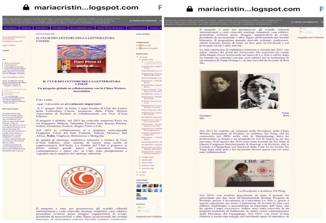 意大利“中國文學讀者俱樂部”開設的文學博客頁面