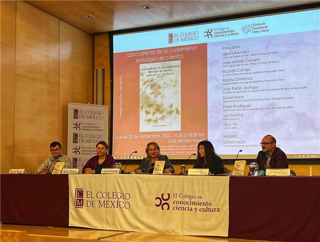 2022年是中國和墨西哥建交50周年。當地時間9月22日下午,由中國作家協會資助出版的《隔離期的閱讀——中國短篇小說選》西班牙文版推介會以線上線下結合的方式在墨西哥學院阿方索·雷耶斯報告廳舉行。該書編者墨西哥學院亞非研究中心教授莉亞娜·阿索夫斯卡(Liljana Arsovska)、北京語言大學拉丁美洲研究中心主任孫新堂,譯者墨西哥學院亞非研究中心主任何塞·安東尼奧·塞維拉(José Antonio Cervera)、墨西哥國立自治大學副教授拉嫡娜(Radina Dimitrova)、墨西哥漢學家白佩蘭(Flora Botton)、羅豹鹿(Pablo Rodríguez Durán)、胡安·巴布羅·哈烏雷吉(Juan Pablo Jáuregui)、大衛·納扎爾·庫蒂尼奧(David Nazar Couti?o)、羅杜安(Antonio Rodríguez Durán)以及中國作家喬葉等40余人參加活動。墨西哥學院亞非研究中心學術主管三浦里美教授(Miura Satomi)主持推介會。