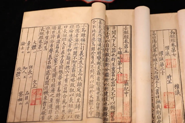 澎湃新聞獲悉,首展之一以“典冊琳瑯”為主題,系統展示從紙間書寫到勒石傳拓,從古代的雕版,活字印刷,再到近代的鉛印、石印等技術更迭下的文化傳播之路,從一個側面呈現出中華文化源遠流長的發展脈絡。其中,堪稱“鎮館之寶”,翁同龢舊藏的宋刻本《長短經》也在展覽之列。