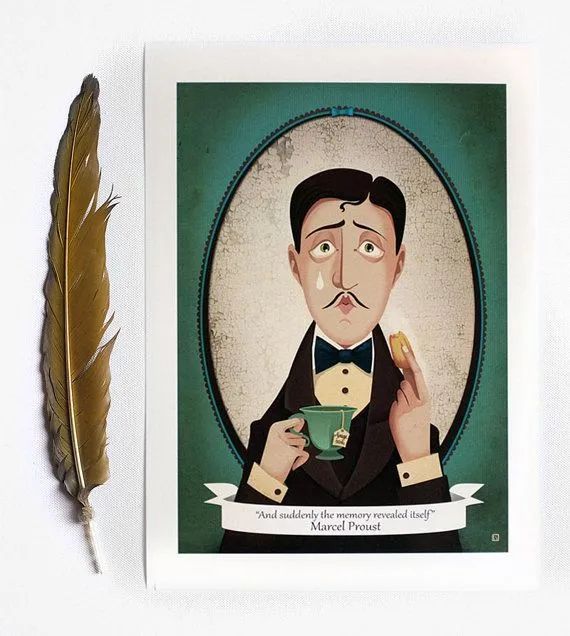 突然之間,我回憶起來了。味道正是那塊小瑪德萊娜的味道,在孔布雷,每星期早晨,(因為星期天在做彌撒的鐘響以前我不出門),我去萊奧尼姑媽的臥房請安,她總是把小塊蛋糕放進茶或椴花茶里浸一下給我吃……但是人亡物喪,昔日的一切蕩然無存,唯有氣味和滋味長久留存,盡管更微弱,卻更富有生命力,更無形,更堅韌,更忠誠,有如靈魂,在萬物的廢墟上,讓人們去回想,去等待,去盼望,在幾乎摸不著的網點上不屈不撓地建起宏偉的回憶大廈。