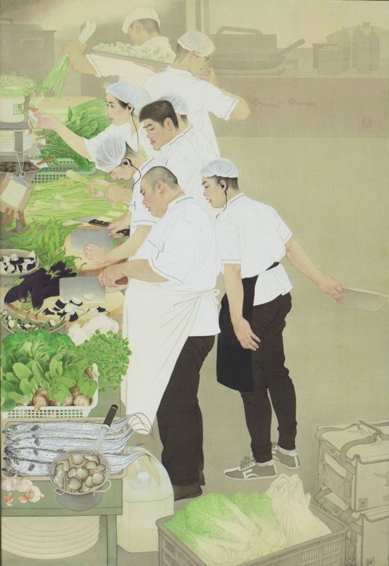 陳治、武欣《零點》《兒女情長》《尖峰食刻》,王珂《都是熱血兒郎》,李玉旺《使命》,孫震生《雪域歡歌》等,這些在近幾屆全國美展中涌現出來的深受好評的中國畫之所以能夠打動人,還在于作品所描寫的城市生活、所塑造的青年人既充滿了青春活力,更表現了經濟社會中青年一代應有的社會擔當?!读泓c》在日本巡展時被高度關注,這件作品所繪寫的中國城市青年生活是如此現代、時尚,而又如此深情和溫馨,刷新了國外民眾對中國現代生活的認知。畫面對工筆人物形象塑造的語言探索,也因承載有溫度的中國現實生活而增強了藝術感染力。事實上,新時代中國畫最惹人注目的領域已從水墨寫意畫轉向重彩工筆畫。當代形態的重彩工筆畫對再現深度的發掘取得了前所未有的成就,它不僅汲取了中國古代壁畫養分,而且借鑒了歐洲早期文藝復興坦培拉畫法和簡約立體的造型語言。而這種語言的探索正是中國快速發展、提升民眾現代生活品質的一種審美折射,是新興的現代城市視覺文化在工筆畫領域的審美新創造。工筆畫甚至比寫意畫更具備后現代藝術的觀念性,具象描繪卻充滿了象征和隱喻,這使得工筆畫從藝術語言到表現觀念進行了多層面、多維度的轉換與拓展,從而賦予當代中國畫以多種文化藝術的兼容性。