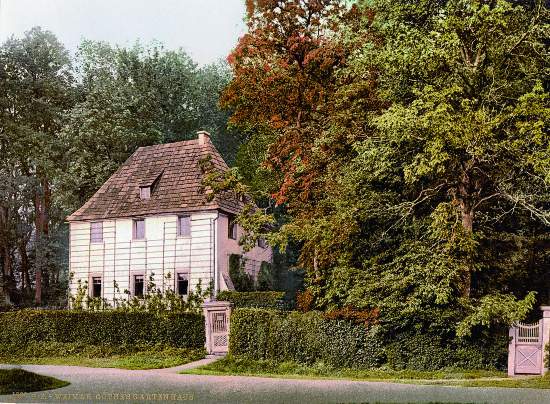 1749年一個暗夜里,歌德降生在德國東部美茵河畔的法蘭克福,但他一生50余載,都是在距離柏林300公里的魏瑪市度過的。他以滿腔熱誠,使這座邊城變為19世紀歐洲大陸浪漫主義風潮的源泉,在德意志文壇激蕩翻滾了整整半個世紀,余波遠遠超出德國的疆界。在英倫三島,涌現出拜倫、雪萊、華茲華斯和柯勒律治。在北國俄羅斯,有普希金和萊蒙托夫,遠至大洋彼岸的是惠特曼和愛倫·坡。各分支流派此伏彼起,以抒情美感的心源追求個性解放,乃至整個民族的自由與獨立。歷史事實上,浪漫主義潮流主要是在德國拓展開來,一定程度上與歌德以魏瑪為中心的漫長文學生涯緊密聯系。因而,該市的街巷、花園均留有自然與文學藝術融合的記憶。