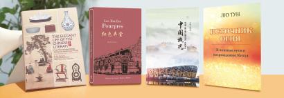 從左往右依次為:《長物志》(英文版)、《紅色弄堂》(法文版)、《中國概況》中文原版封面、《火種——尋找中國復興之路》(俄文版)。(均出版方供圖) 制圖:李潔