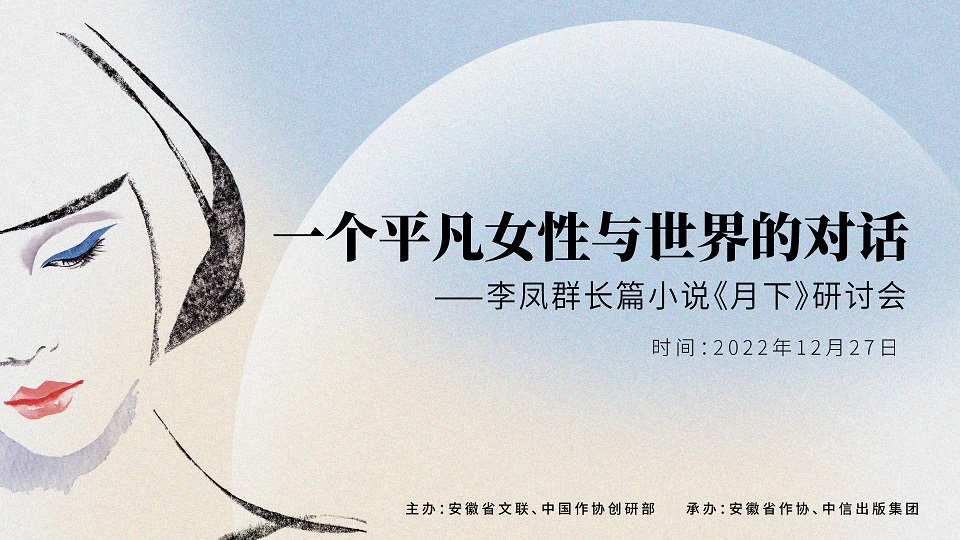 12月27日,以“一個平凡女性與世界的對話”為主題的李鳳群長篇小說《月下》作品研討會在線上舉行。本次會議由安徽省文聯、中國作協創研部主辦,安徽省作協、中信出版集團承辦。中國作協黨組成員、書記處書記施戰軍作書面發言。中國作協書記處書記邱華棟,中國作協創研部主任何向陽,安徽省文聯主席陳先發,中信出版集團執行總編輯、總出版人王蕾及十余名專家、學者出席研討會,會議由中國人民大學文學院教授楊慶祥主持。