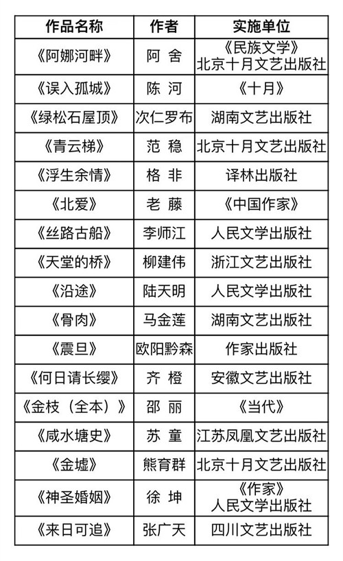 新時代文學攀登計劃第二期支持項目名單