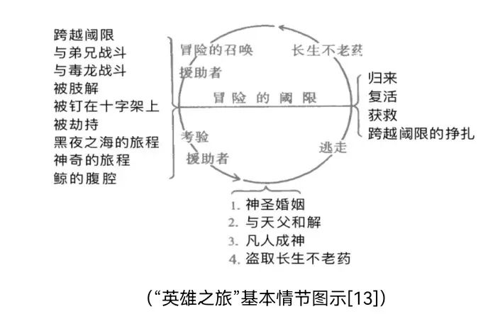 這個模型,與約瑟夫·坎貝爾在《千面英雄》這本研究神話傳說的著作中提煉的“英雄之旅”情節模式,高度一致。這種一致性不是偶然,我認為這是歷久彌新的神話藝術穿越千年時空,在網絡文學之中產生的回聲: