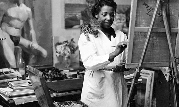 貓在繪畫中如此頻繁地出現并不奇怪:藝術家們往往喜歡它們,也許是因為它們的桀驁不馴和獨立。此外,照顧貓比照顧狗省心,因為貓不需要遛。盡管它們仍然會礙事,正如美國畫家洛伊斯·梅盧·瓊斯(Lois Mailou Jones,1905-1998)站在畫架前,肩膀上趴著一只小貓的照片所顯示的那樣。