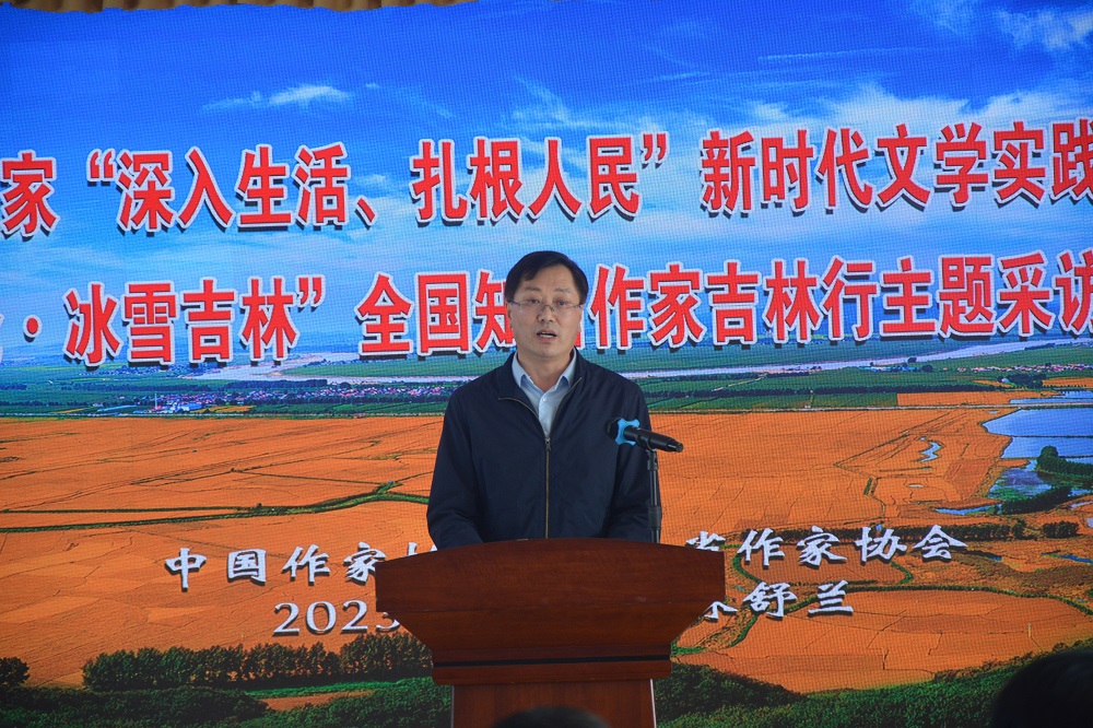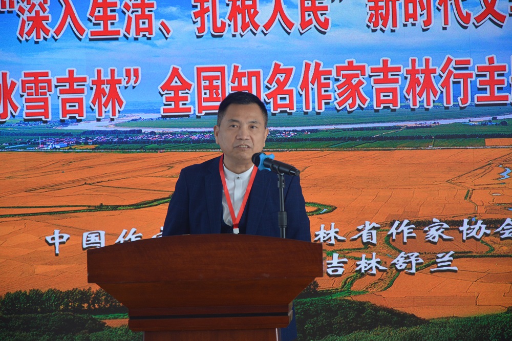 陳彥表示,此次中國作家“深入生活、扎根人民”新時代文學實踐點設立在舒蘭,不僅因為舒蘭是黑土糧倉,肩負著國家糧食安全的神圣使命,同時也是“綠水青山就是金山銀山”的重要實踐地,其“遠迎長白,近繞松花”的獨特區位優勢和優美生態,其深厚的文化底蘊、鮮明的時代特色和卓越的建設成就,都為廣大作家進行文學創作提供了取之不盡用之不竭的文學資源。希望舒蘭的中國作家“深入生活、扎根人民”新時代文學實踐點不但真正成為全國作家心之向往的文學根據地和精神家園,更要成為以文學的方式服務、書寫、宣傳舒蘭和吉林的一個重要窗口和陣地,成為舒蘭和吉林文旅融合的文學地標和文化名片。希望廣大作家立足中國大地,從時代之變、中國之進、人民之呼中提煉主題、萃取題材,從時代的細微處發現豐富、厚實的素材,從而創造出真正屬于時代和人民、真正為時代和人民所歡迎的豐沛而又深刻的文學作品。相信舒蘭和吉林人民在這片土地上的偉大創造,作家朋友們在這片土地上的深耕細作,精彩動人的中國故事、時代史詩、命運華章一定會在這片黑土地上競相綻放。