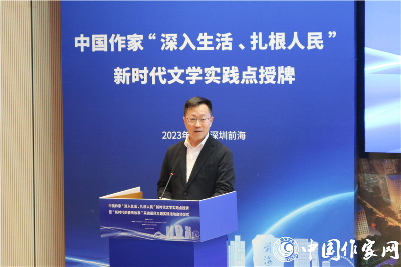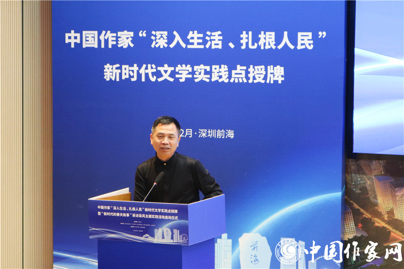 中國作協書記處書記邱華棟在講話中指出,舉行中國作家“深入生活、扎根人民”新時代文學實踐點授牌暨“新時代的春天故事”主題采訪采風活動,團結引領廣大作家堅持“以人民為中心”的創作導向,讓文學以更加主動的姿態為基層服務、為人民服務、在人民的口碑中綻放光芒,推動新時代文學高質量發展,具有特別的意義。前海地理條件優越、文學發展潛力巨大、組織機構健全,具備建設國家級新時代文學實踐點的充分條件。要健全常下基層、常在基層的長效機制,不僅身要沉下去,而且情要融進去,真正吃透生活底蘊、汲取創作營養,讓深入生活真正成為創作的必修課,鼓勵作家走得出、沉得下、蹲得住。希望新時代文學實踐點成為當地作家乃至全國作家的一塊文學根據地,支持作家們在這塊根據地上深入開掘、充分表現,生動講述恢宏大氣的國家故事、感人肺腑的社會故事、勵志進取的個人故事,創作出屬于新時代的新史詩。