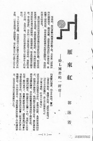 《脫離蔣介石以后》中寫到的一個歷史細節頗有意思:1927年4月,郭沫若受命前往上海主持總政治部上海分部工作,尚未到達上海,即得知蔣介石已經查封了上海分部,遂暫留蘇州,期間致信蔡暢,“報告我的行蹤,并報告富春同志已到上海的消息”?!暗也荒芄_地通信,我寫給蔡暢的信上,‘沫'字是寫成‘妹'字的,于是‘土豪劣紳'一變而為‘母豪劣紳'了”。用“妹”字,或許是藉性別用字迷惑外人,但對于接信人,相必是憑讀音,即能知其為“沫若”。這是不是也可以印證“沬若”通“沫若”。