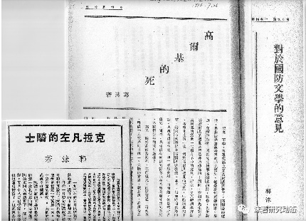 圖二:《東方文藝》《劇場藝術》《質文》幾種刊物上刊文的署名,這是在郭沫若流亡日本時期?!秳鏊囆g》《質文》為在日本東京出版印行的刊物。