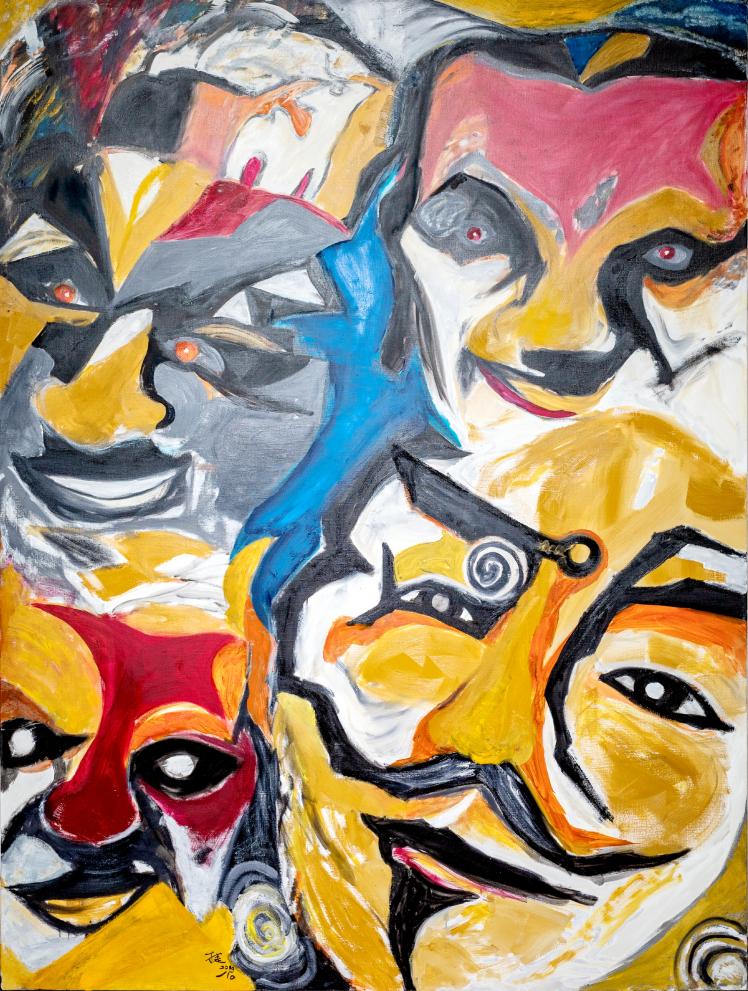 被很多讀者打卡的丁捷巨幅油畫《極樂戲》,該作品曾參加澳門國際藝術雙年展。
