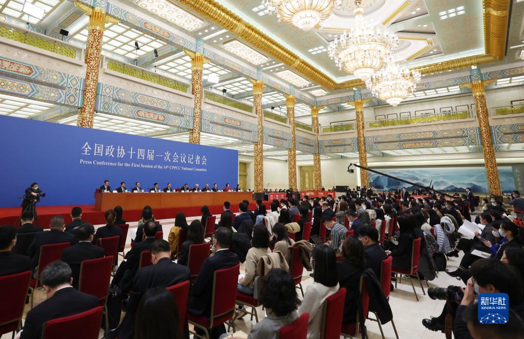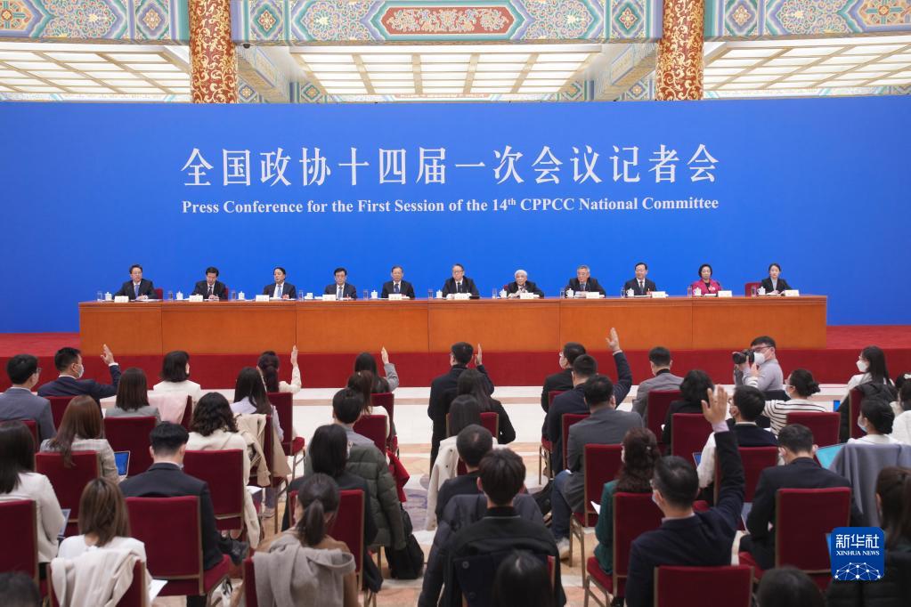 3月5日,全國政協十四屆一次會議在北京人民大會堂舉行民主黨派中央和全國工商聯領導人記者會?!⌒氯A社記者 陳益宸 攝