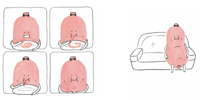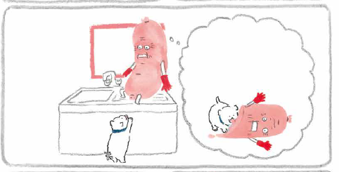 當被問到“為什么書中是香腸和小狗相遇”時,安寧達這樣說:“你可能會認為小狗和香腸爺爺的組合有點奇怪,但當我寫這個故事的時候,我不知為何會認為香腸會喜歡小狗?!?/p>
